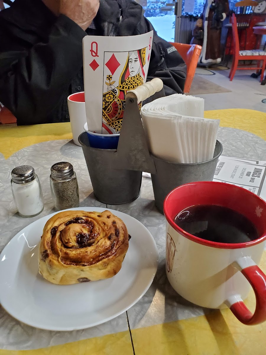 For those craving lighter but still flavorful options, the noodle soup delivers a soothing, homemade feel that works well for lunch or dinner. Fish and chips are also a crowd-pleaser, with flaky fish and golden batter that pairs nicely with the casual diner setting. And if you’re stopping in for a slower morning or mid-day break, the cinnamon roll with coffee is a simple pleasure that feels just right-soft, sweet, and comforting without being over the top.